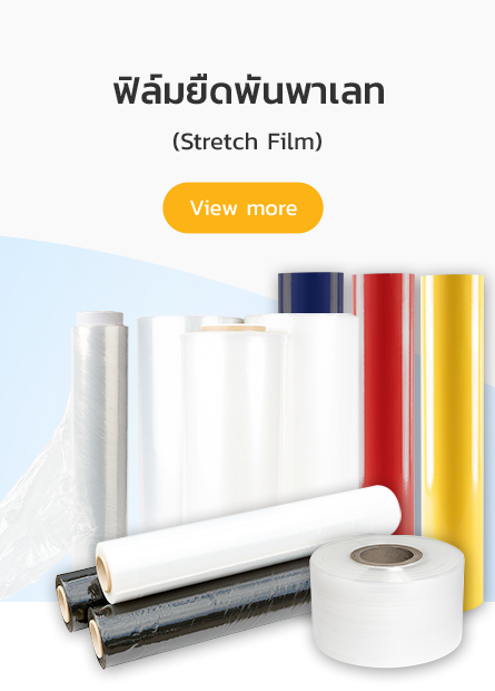 ฟิล์มยืดพันพาเลท (Stretch Film) ผลิตจากเม็ด LLDPE (Linear Low Density Polyethylene) เกรดดี ใช้สำหรับพันสินค้าบนพาเลท เพื่อรวมสินค้าเข้าด้วยกัน เพื่อความสะดวกในการขนย้าย และป้องกันฝุ่นละอองและน้ำ ใช้แพร่หลายในสำหรับกลุ่มโรงงานอุตสาหกรม และการขนส่ง มีทั้งประเภทสำหรับใช้คนพัน (Hand Roll) และสำหรับใช้เครื่องพัน (Machine Roll) มีให้เลือกใช้ให้เหมาะสมกับสินค้าแต่ละประเภท และสามารถผลิตเป็นฟิล์มสีได้ ทางบริษัทเรา ยังสามารถทำเป็นขนาดหน้ากว้างที่ลูกค้าต้องการได้